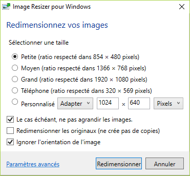 Image Resizer redimensionner les images simplement avec un clic-droit :