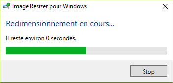 Après avoir cliqué sur le bouton Redimensionner une fenêtre s'affiche brièvement suivant le nombre de photos à traiter, patienter :
