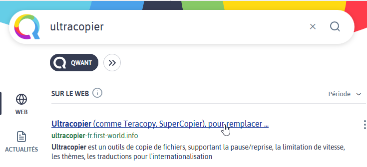 Dans un moteur de recherche, taper Ultracopier puis cliquez sur le lien Ultracopier (comme Teracopy, SuperCopier), pour remplacer … :