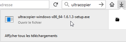 Une fois le téléchargement terminé, cliquez sur la ligne ultracopier-windows-x86_64-1.6.1.5-setup.exe :