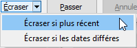 Puis cliquez sur le bouton Écraser et choisir Écraser si plus récent :